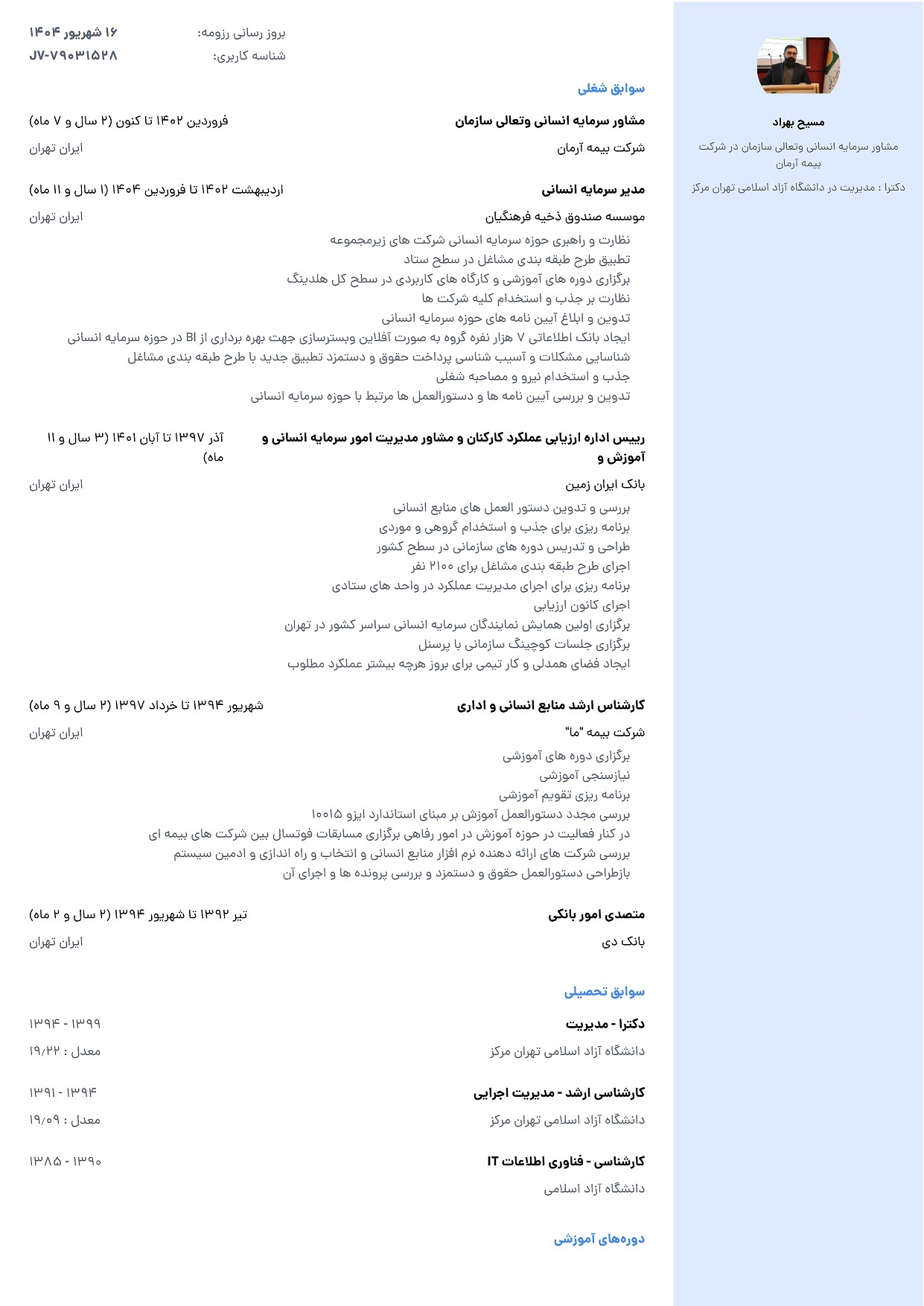 شرح رزومه :